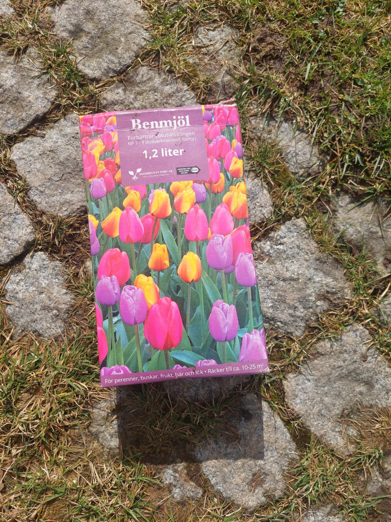 Jag planterade dem på samma djup som tidigare (5-10 cm) i grupper om 3-5 lökar och myllade ner benmjöl i botten av lökarna som jag blandade ut med kompostjord (långtidsverkande gödsel som ger en rikligare blomning nästa vår).