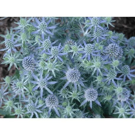 Till vänster finns en dvärgsort av rysk martorn (Eryngium planum ‘Blue Hobbit’) som jag fick med på köpet när jag beställde andra växter från Hortogreen.se (bilden är lånad därifrån). Jag är en sucker för gratisgrejer.. . Och just denna växt hade jag faktiskt funderat på tidigare, lustigt hur det kan bli va? Hur som helst kommer den att få formen av ett klot där hela plantan har blåskimrande nyanser och den blir inte högre än 30 cm.