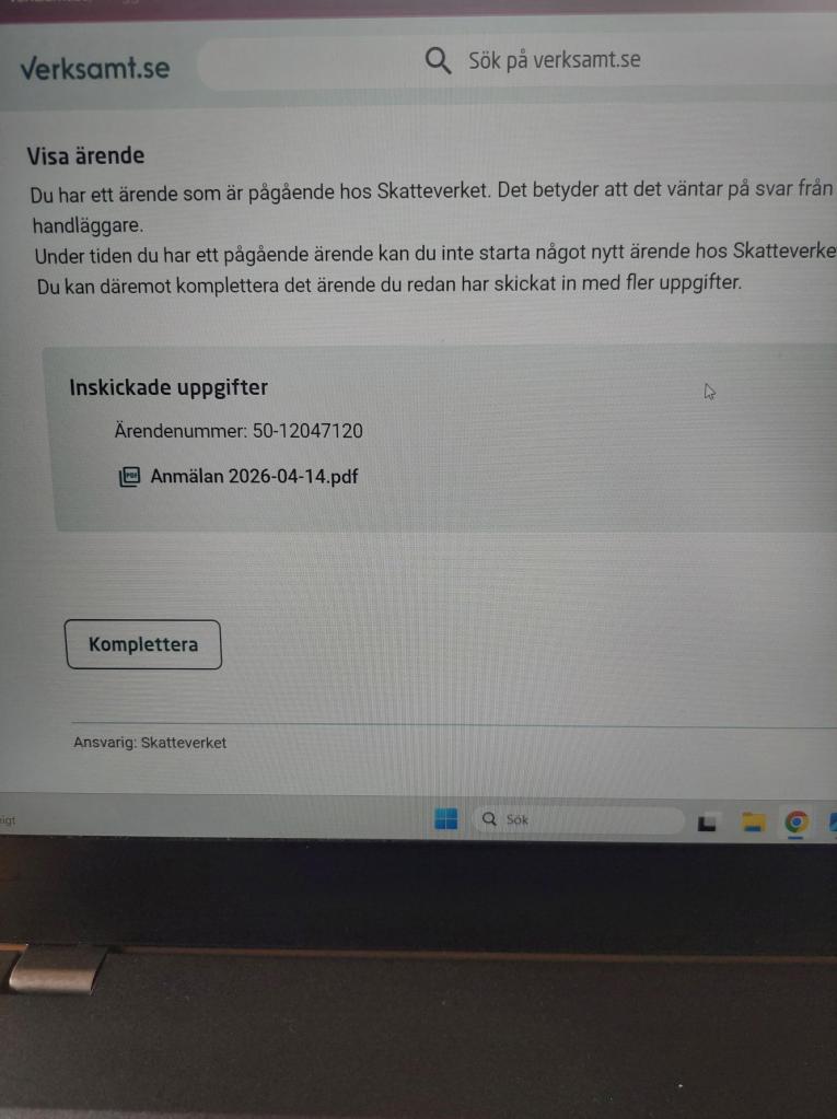 Det tog inte särskilt långt tid efter detta beslut innan ansökan var komplett. Vilken lättnad det är att den är inskickad och att det nu bara är att invänta Skatteverkets beslut.